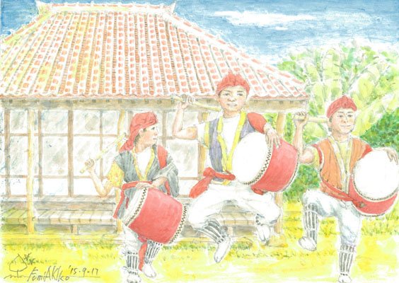 太鼓を たたいて