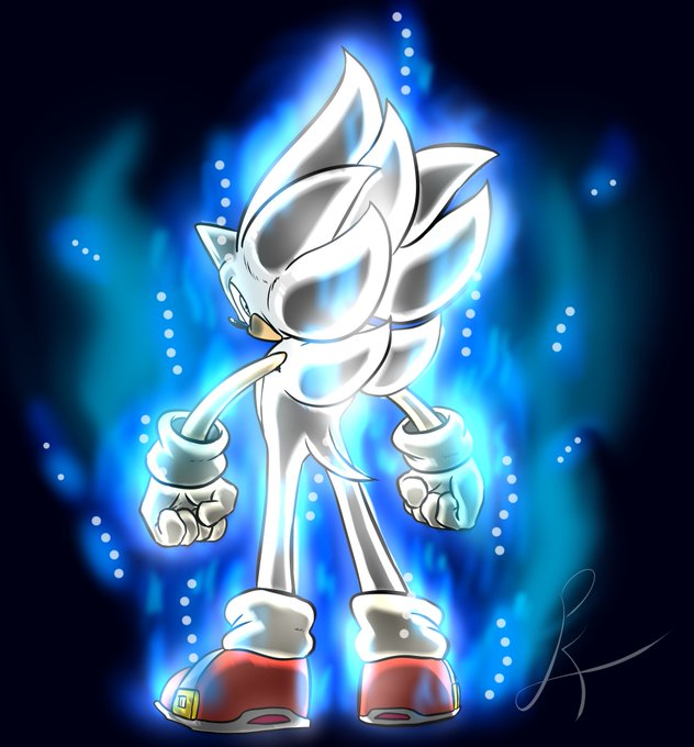Ive been thinking about what that corrupted arm he has in the trailer could mean. I think itd be cool if he had a unique transformation for it. so heres my #SonicFrontiers , Cyber #SuperSonic concept! I imagine the corruption on him gets worse and infects the emeralds at the end.