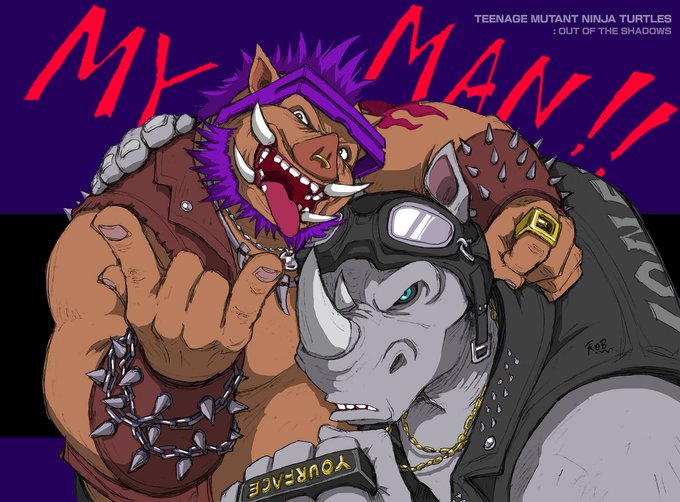 博物館でロックステディがちょっかい出してたシーン。押しのけられた仕返しに、舐めた指をビーバップの耳にずぼっと入れてたみたいでそりゃ嫌がられるっていうか脊髄反射でどつくわ!!小学生か!!!かわいい!!!