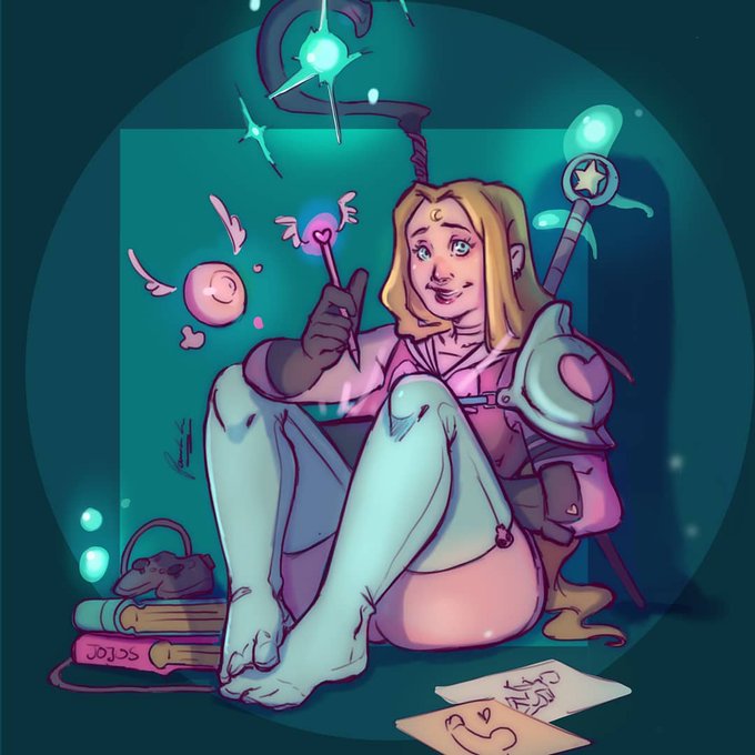 @jasperthecrab @MarySkidbladnir Hi! I'm Abbie! I'm a Concept artist from Spain! I really like to draw fantasy/DnD stuff, cute colours and i do NSFW sometimes :)