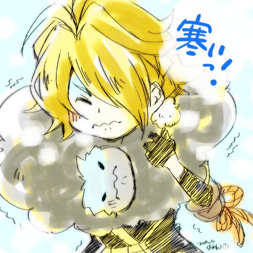 サンプル画像はニコニコだったのに、ぐぬぬ……な表情になっちゃってる件について、とりあえず、今日めっちゃ寒かったので、実は獅子王って寒いの苦手だったのかなって思ってみたラクガキ。