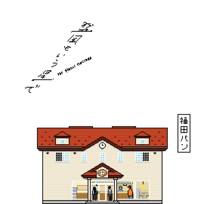 〈盛岡という星で・盛岡ドット絵不動産〉福田パン長田町本店。私の定番は、いつもはスーパーで手軽にあんバター、お店に行ったらしょっぱい系で、ナポリタンは必須です。パン屋さんだけど、大学時代に住んでたアパートを思い起こさせるどこか懐かしい2階建て。