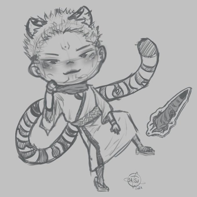 Anyway, Bunnygumi, Tiger!Sukuna and Cat Gojo from Jujutsu Kaisen 💜