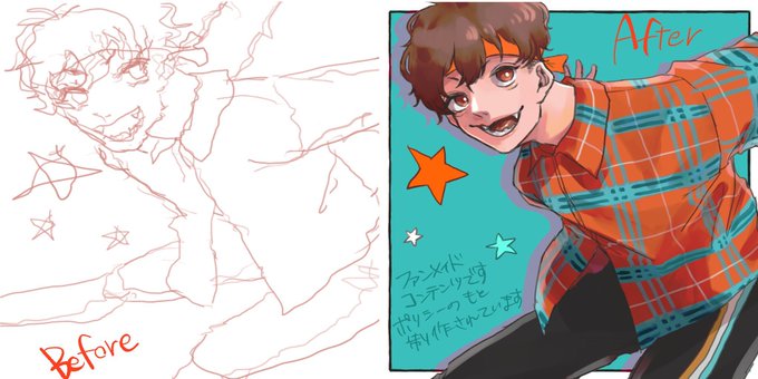 遅ればせながら灼骨担当分です☠️ 4枚目はラフに忠実な線画一回描いてみたやつ https://t.co/h3Iqo4hVyE