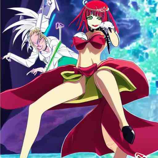 日本アニメ風にってお願いするとこうなる。悪役令嬢氏がもう負けてる。