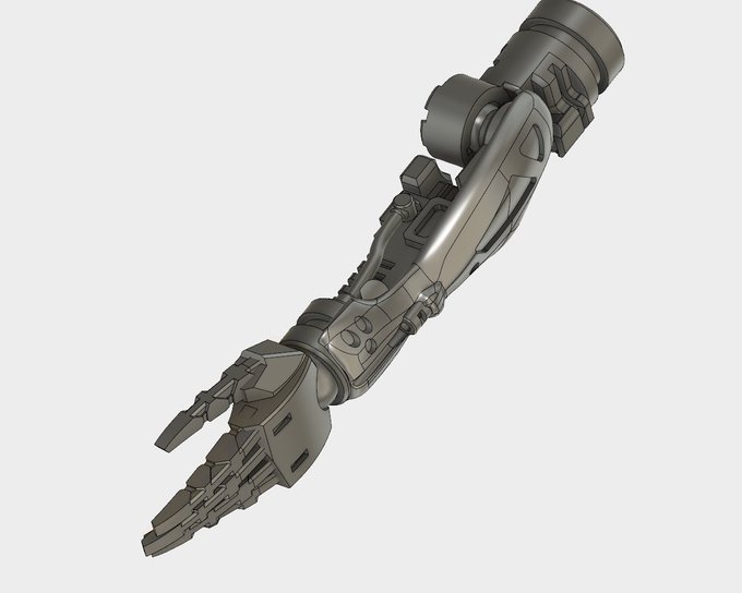 過去のデータをフィードバックして展開型レーザー内蔵義肢の新モデル作ってる。出力に回した後に干渉部が残ってることに気付いたので手直しは必要だろうが何とか形にはなりそうかな… #武装義肢