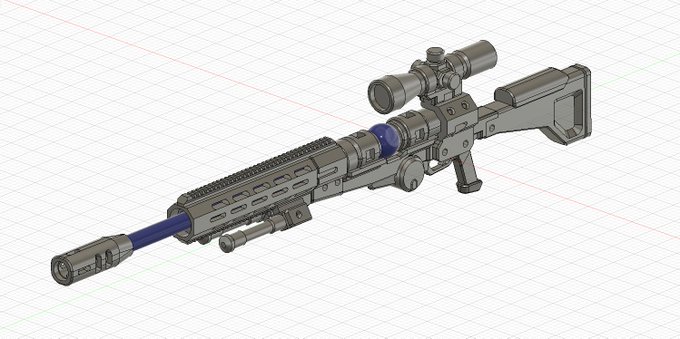 先丸棒球のカートリッジを簡素化してぇなぁとモデリングしてたら興が乗って似非ボルトアクションライフルができたよ… ボルトやバイポッドは可動、気が向いたときに拡張できるようにパーツはモジュラー化。全長が127mmと0.9メガミぐらいなのでデカさがネックか…
