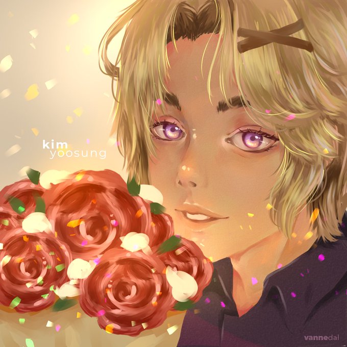hi, hi~ so i did another semirealism as it has been a long while. and i did a rework of (original art below)! kim #yoosung of #mysticmessenger as pretty flower boy 🥺