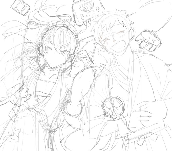 珍しくデータが残っていたので備忘録 レイヤー4枚 ペン 油彩平筆、墨ややかすれ
