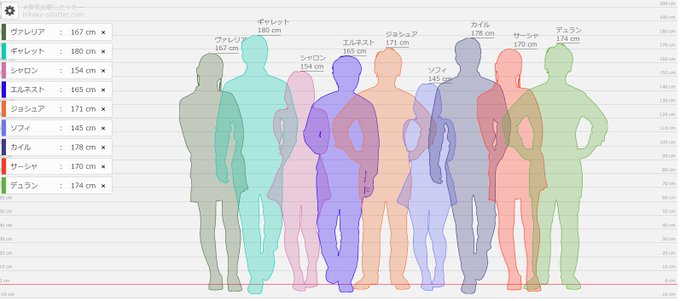 主人公勢と悪役の身長メモ。 第三勢力の人達はまた今度~