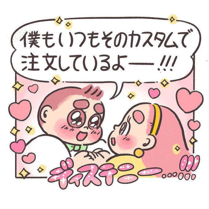 牛丼 Falling Love まろ&ぽにょ🍩🍟「運命!!💕💕💕」 #ぽちゃ日和 #イラスト #illustration #創作漫画 #おそとごはん #牛丼 #カスタムオーダー #デカ盛り