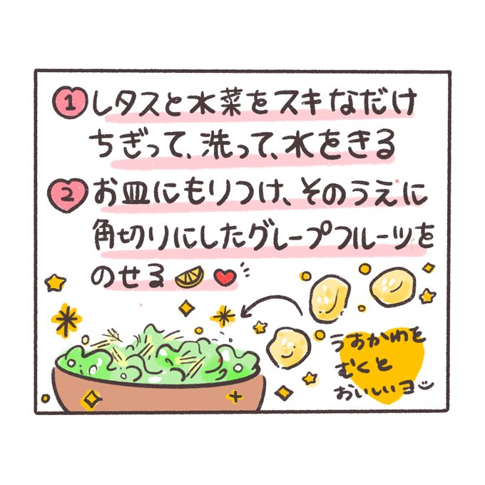 #ぽちゃ日和 #イラスト好きな人と繋がりたい #絵描きさんと繋がりたい #絵柄が好みって人にフォローされたい #食べ物イラスト #レシピ #献立 #サラダ