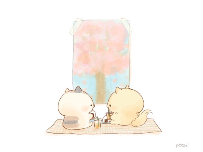 ふたりのおはなみ🌸 #となりのにゃんこ #ミケクリ