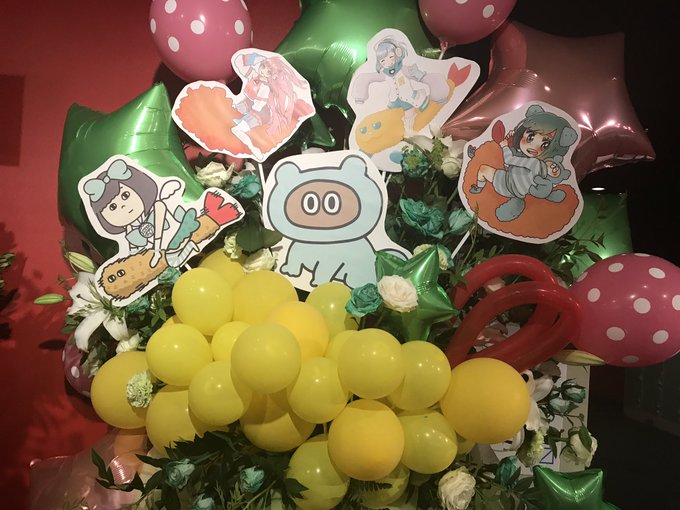 夢眠ねむさんの生誕祭〜自作自演のHappyBirthday〜名古屋公演のフラスタのデザインとイラストのお手伝いをさせてもらいました!エビフライに乗りたいと言ってたねむさんとユメミストのたくさんの愛をこめて。えびふりゃ!(ノ ´ω`)ノ=͟͟͞͞🍤💓 #ねむ生誕 #ぽこぼっくす
