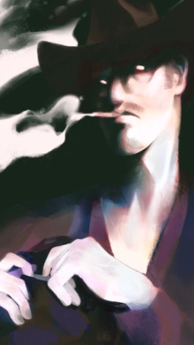 closeup of vampire cowboy