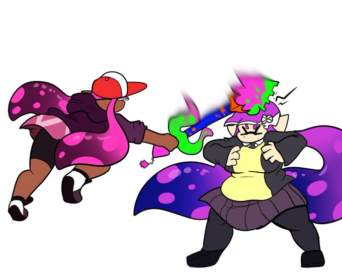 Thwack! Ika doesn’t appreciate Rosa’s new weapon lmao comic commission by @IkaOctoGirl!