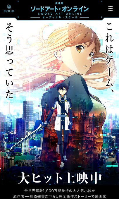 皆さん!!ソードアートオンラインの映画いいですよ!!ユナちゃんかわいいし、キリトがかっこいいし、戦闘シーンは瞬きが許されません😳✨音楽はあの「まどマギ」の梶浦由記さんで、Kalafinaのコーラスとユナ役の神田沙也加さんの歌声が絶妙です💕毎週特典が変わるので、必見ですよ〜!😆✨