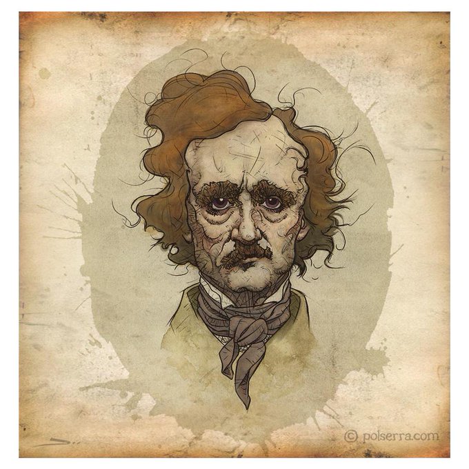 Edgar Alan Poe who died #OnThisDay in 1849. #poe #alanpoe #portrait #illustration #ilustración #retratoPoe