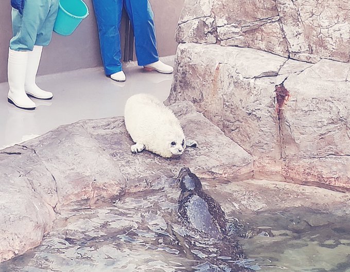 先月生まれたばっかりのゴマフアザラシちゃんみてきた。ちっちゃくて毛がフサフサで超かわいかった😳