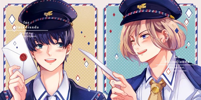✉️ Banri and Tsumugi for @/nindianda! Drawing them in postman attire is so fuuunn.