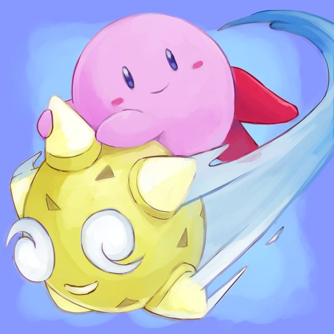 お題箱より、『ポケモン』のメテノに乗るカービィ。 #odaibako