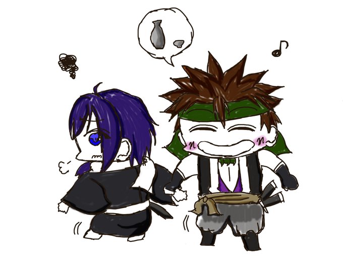 永倉新八+斎藤一 新「酒でも飲みに行こうぜ」 斎「土方さんに怒られても知らんぞ…」 #薄桜鬼版深夜のお絵かき60分