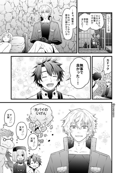 #FGO 7章9~10節のカドックの笑顔。 どんな英雄も落とすスーパー愛されマスターぐだの前では先輩の威厳など脆いものであったという解釈というか妄想。