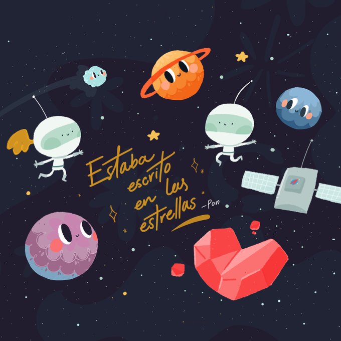 💫 El tema del #ViernesDeIlustracion le tocó a @ScarletAdrianne y es Astronautas✨ Siempre ando dibujando a estos pequeños, siento que el universo quiere que estén juntos ⭐️ #VDI