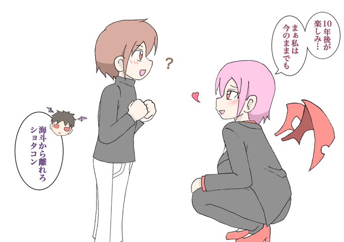 鴇々さんの海斗君をお借りしました! うちのドラクルと衣装交換!ドラクルの方が少しお兄さんみたい。真似っこする海斗君と、少し恥ずかしいドラクル。 ブラックザバスは相変わらず節操無いぞ!