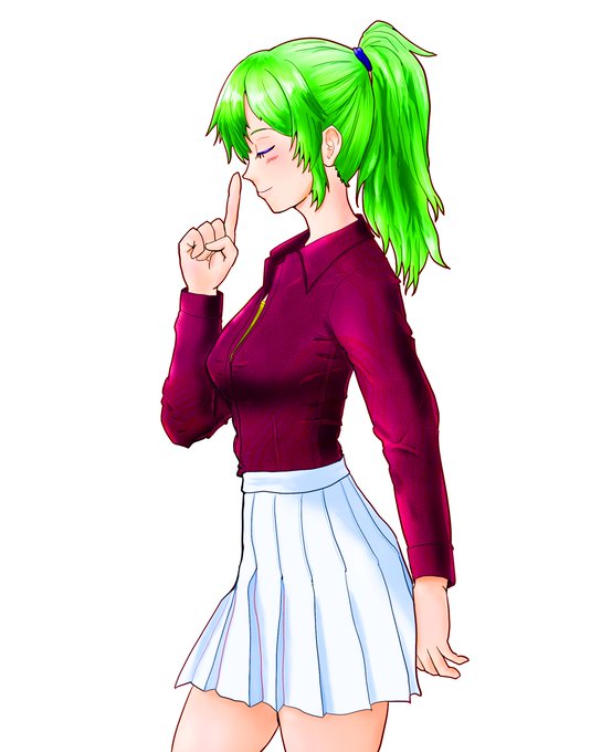 ライムグリーンなポニテの看板娘「翠田影子(あおたかげこ」と共に。インスタも良ければどうぞ。