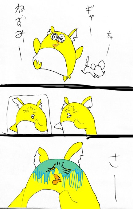 ポンえもん? 寝てたら ネズミに耳を齧られた ポンえもん 鏡を見て 青ざめていくポンえもん