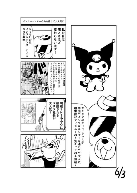 6/3 インフルエンサーの力を借りて大人気に #4コマ #ゴリラ社長