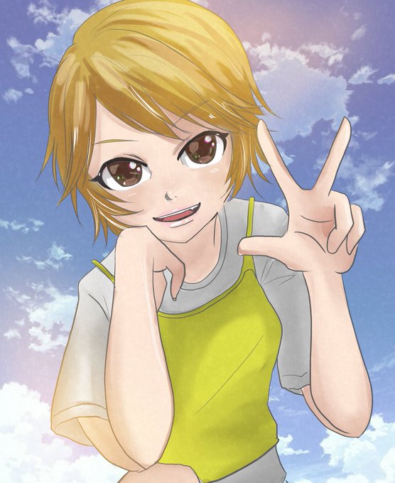 イカタコ練習企画第6弾 ふーしょんちゃん🥳オリジナル髪型の提案もらって描くの楽しかった🥰いつもカッコイイ絵のしょんちゃんだから可愛いのもたまには…ね🥹