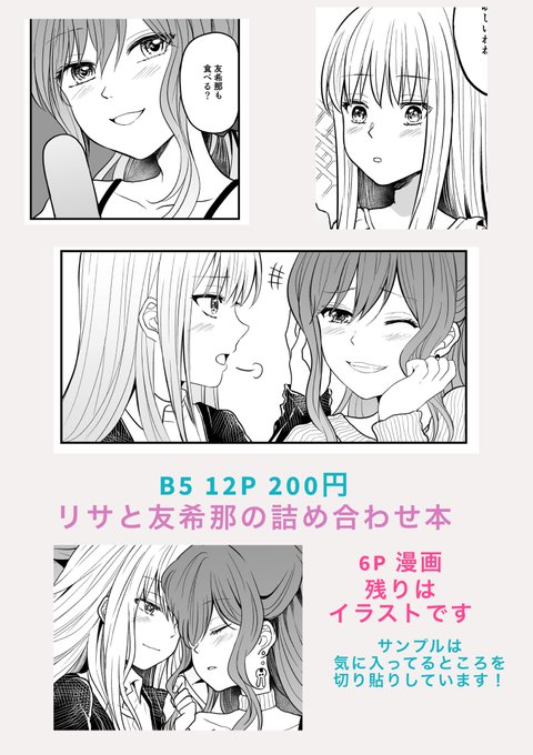 こみトレ34のバンドリオンリーのお品書きと新刊コピー本のサンプルです!「リサと友希那の詰め合わせ本」B5/12P/200円です。あと今回1人参加になるので会計時などあたふたしてるかもしれないですが当日はよろしくお願いします…!!!🙏最後のタペストリーが目印です。5号館ヌ-03bでお待ちしています☺️