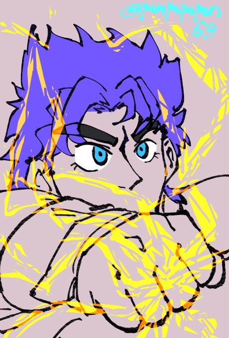 #JOJO版深夜の真剣お絵描き60分一本勝負 お題「山吹色」「青紫色」「空色」+15分 山吹色の波紋疾走!