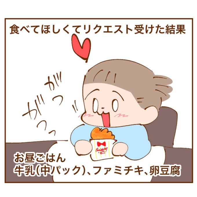 母、ファミチキとお寿司買いに行ったよ。早く元気になぁれ〜! #育児漫画 #漫画が読めるハッシュタグ