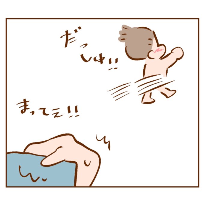 最近毎日おふろからあがると前転寸前ポーズしてる。おしりぺしぺししても喜んじゃう…風邪ひくよ〜 #育児漫画 #漫画が読めるハッシュタグ