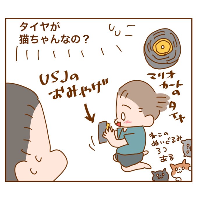 タイヤ型の猫ちゃんなのか タイヤそのものが猫ちゃんなのか そもそもなぜ猫ちゃんの設定なのか… #育児漫画 #漫画が読めるハッシュタグ