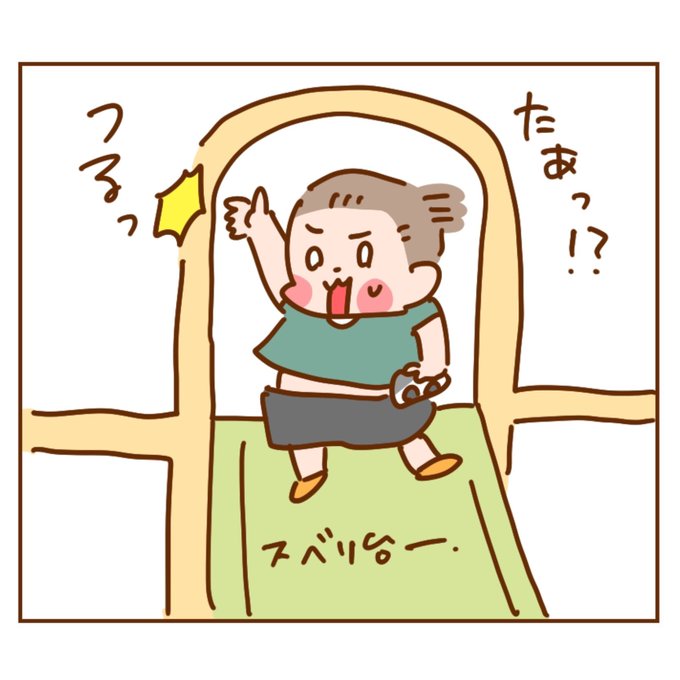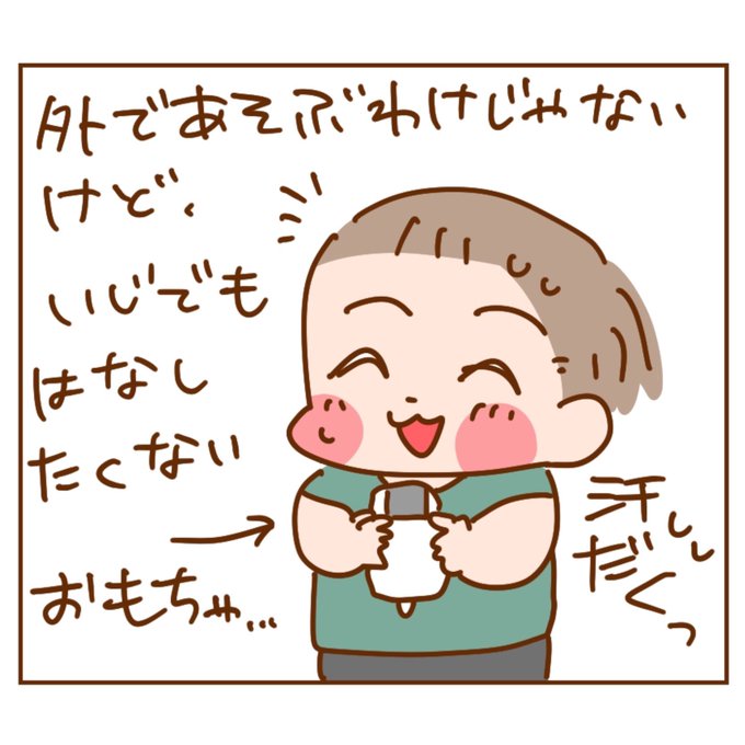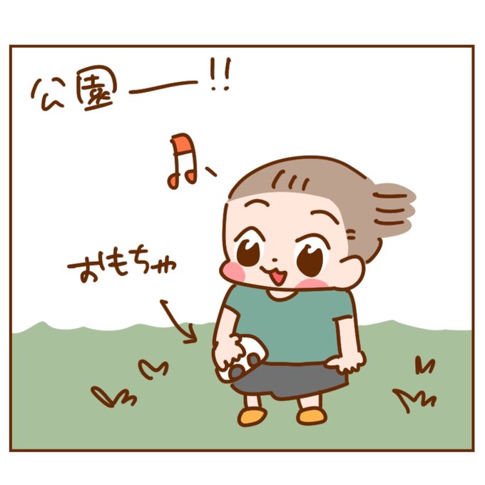 ぽんちゃん、公園行く時も家のおもちゃを持参するんですが、一応室内で遊ぶものだと思ってるのか握りしめてるだけで絶対遊具や地面につけないの、謎〜(そのぶんズッコケやすい) #エッセイ #日常 #絵日記 #イラスト #家族 #育児日記 #23months #1歳 #1歳11ヶ月 #男の子 #漫画