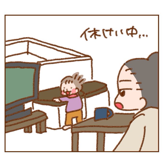 ぽんちゃん、お茶を片手にてくてく…どこに行くのかと思ったら。笑 #エッセイ #日常 #絵日記 #イラスト #漫画 #家族 #育児日記 #育児漫画 #12months #12ヶ月 #1歳 #男の子 #4コマ漫画