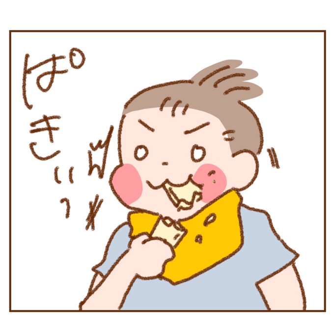 お父ちゃんとおやつタイム! なんかかっこいい食べ方。笑 #エッセイ #日常 #絵日記 #イラスト #漫画 #家族 #育児日記 #育児漫画 #12months #12ヶ月 #1歳 #男の子 #4コマ漫画