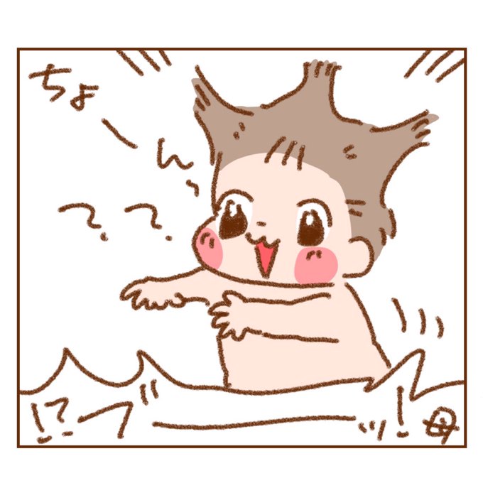 最近お風呂上がりにお父ちゃんのいたずらで髪型が爆発しています。笑 #エッセイ #日常 #絵日記 #イラスト #漫画 #家族 #育児日記 #育児漫画 #12months #12ヶ月 #1歳 #男の子 #4コマ漫画