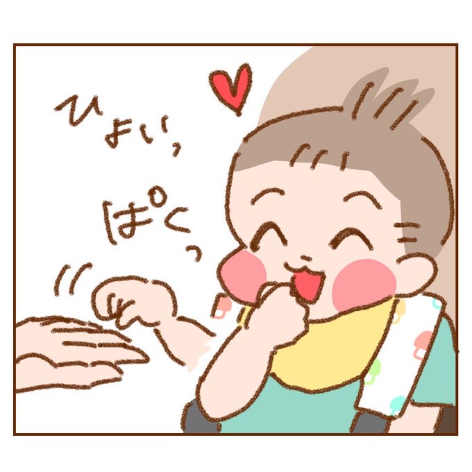 ぽんちゃん、最近おかしを手渡ししてなかったせいか「あーんして食べさせて♡」になっちゃった!! 離乳食も持ってポイするぅ〜!! 一緒に練習しようね…!(;∀;) #エッセイ #日常 #絵日記 #イラスト #漫画 #家族 #育児日記 #育児漫画 #10months #10ヶ月 #男の子 #4コマ漫画