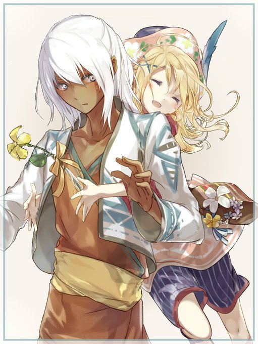 去年描いた花祭り絵と今年描いたのを比較したら シュミ主の2人の仲が進展してることにさっき気が付いた