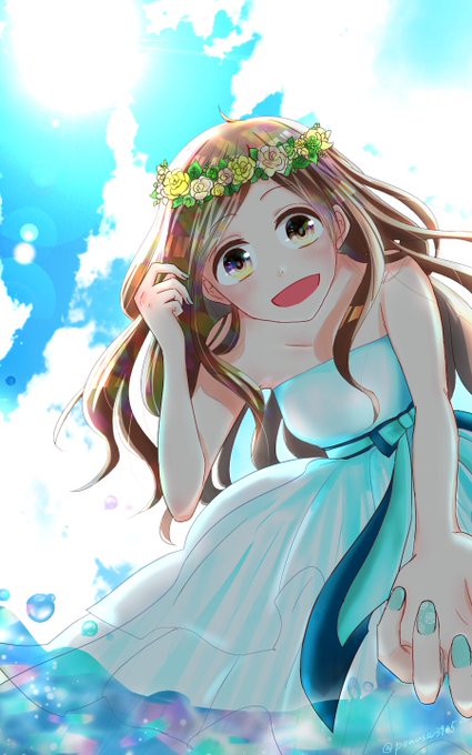 積乱雲グラフィティを聴いてて、青空を描きたくなって、描いた😌✨ばりばり夏の絵😌しーちゃんが、ウエディングドレスで海に入ったから、それを止めようとしたところ、新郎の高橋くんが転けて、しーちゃんが助けるという、妄想に妄想を重ねたシチュ☺️💕