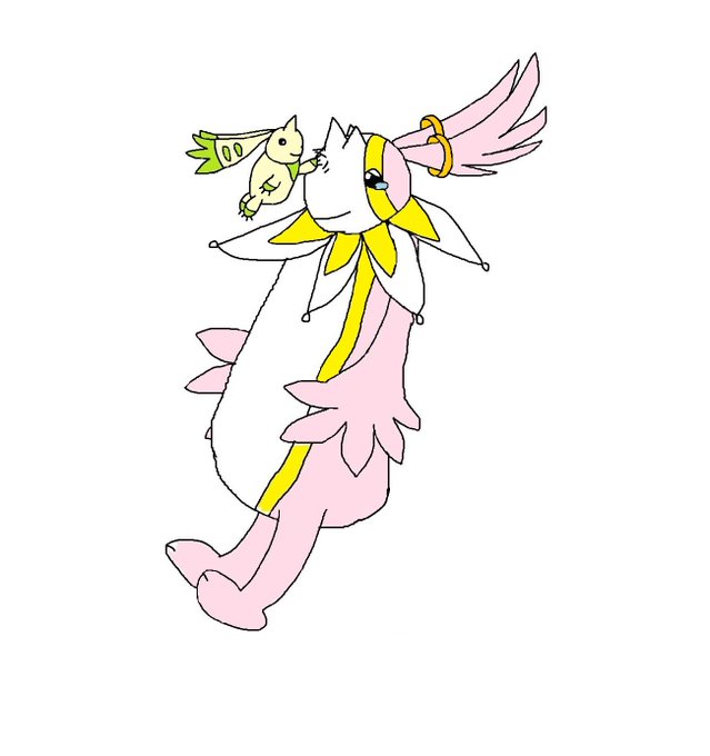 ピカチュウが可愛すぎて思わずキスしちゃったケルビモンちゃんを描きました