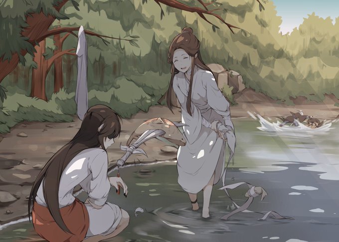 Morning exercise with Ge ge, featuring Lang Ying, Gu Zi and Gu Zi’s dad (Qi Rong). I drew this to encourage myself to exercise more but i still end up lazy _(:3 」∠)_. Full view for the whole picture.