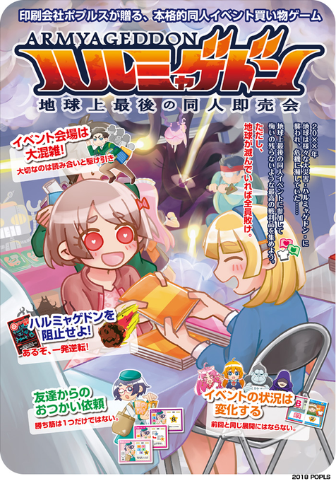 本日ポプルスオリジナルアナログゲーム特設ページに、新作ゲーム「ハルミャゲドン-地球上最後の同人即売会-」のページを追加しました!