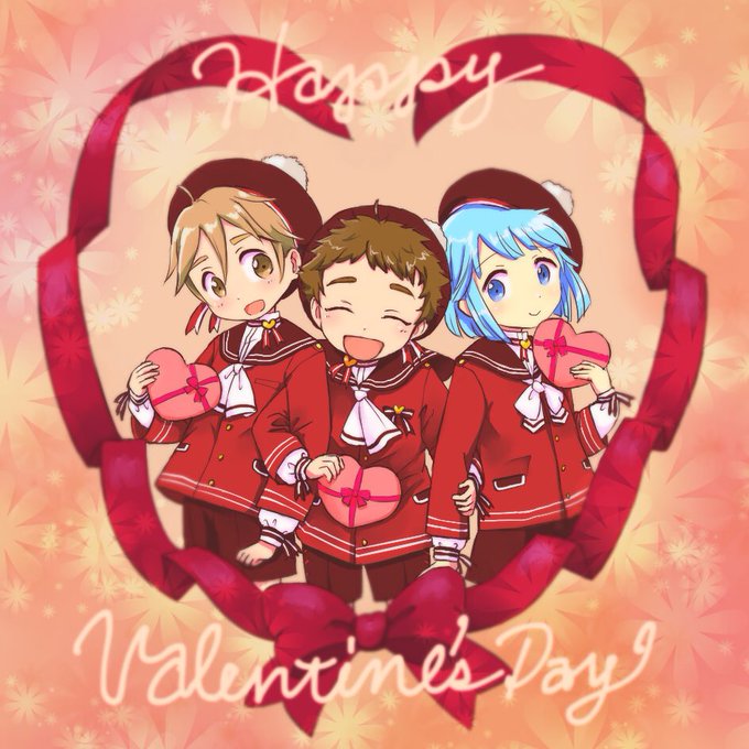 Ra*bitsショコラフェス衣装どうしても描きたかったので‥‥3人はにーちゃんの分もチョコ用意してるはず、(きっと転校生の分も用意してあるw)