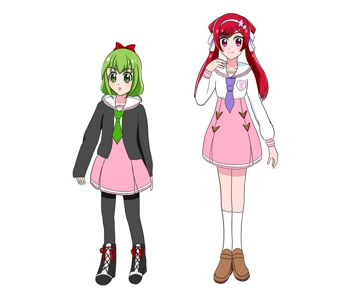 過去絵ですが載せておきますね…😌 明日葉チエ/キュアレイア(緑)、出雲いくみ/キュアマイカです😌 身長差ありますが赤の子の方が年下です笑